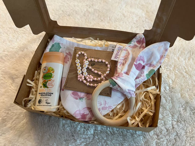 Unsere Boxen werden mit viel Sorgfalt verpackt und eignen sich besonders für alle, die ein stilvolles, praktisches und hochwertiges Babygeschenk suchen. Jede Box ist ein Unikat und wird individuell zusammengestellt – perfekt, um Eltern und Kind eine besondere Freude zu machen.